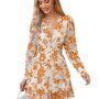 Leriya Fashion Women’s V-Neck Floral Print Ruffle Long Sleeve A-Line Mini Dress
